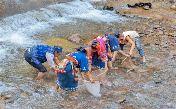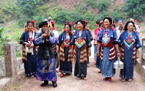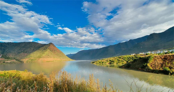 灣碧傣族僳僳族鄉位于金沙江南岸,地處大姚縣北部,距縣城168千米,東與永仁縣永興鄉接壤,南與桂花鄉相鄰,西與三臺、鐵鎖兩鄉毗鄰,北臨金沙江與華坪、永勝兩縣隔江相望。灣碧傣族最具特色的服飾是“火草筒裙”,其在夏季采摘山上的野生火草洗凈,撮下葉片背面的白膜,經捻線、紡織、染色、曬干、裁剪、縫制等工序制作而成。傣家婦女身穿“螞蚱衣”,腰圍“火草筒裙”,既涼爽又方便勞作。每年的農歷三月初七是傣族傳統節日——“窩巴節”,傣意魚的聚會,這一天傣家人在江邊祭拜先祖青哥、紅妹,在江邊唱歌、跳舞,素有“彝州小版納”之稱。