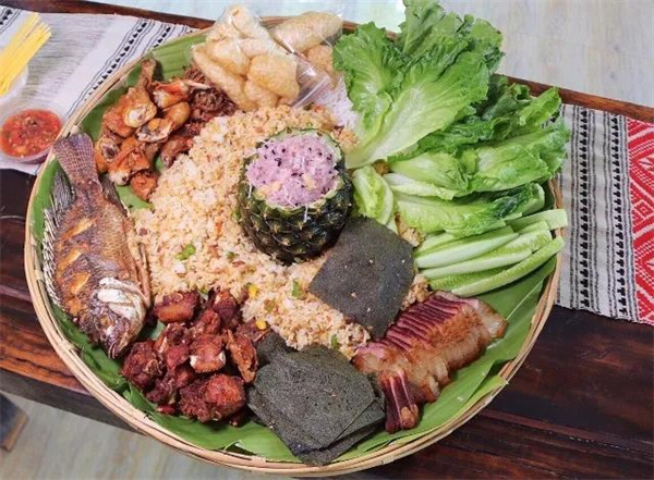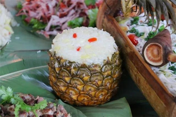 菠蘿和糯米更配!菠蘿飯是很多人提到西雙版納會(huì)在第一時(shí)間想起的一道美味,將菠蘿切丁與糯米充分混合后,便可以進(jìn)行蒸煮。在菠蘿丁的搭配下,普通的糯米飯也變得酸甜可口。其中紫米菠蘿飯,不僅味道好,在紫色和黃色的視覺(jué)沖擊下,也讓整個(gè)菠蘿看上去讓人更有食欲。