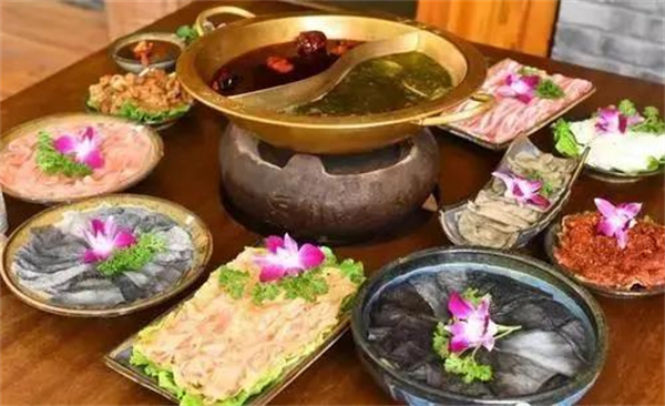 現切新鮮牛肉,受歡迎的牛雜,涮上翠綠的薄荷,再搭配了一個蘸汁,那叫一個麻辣鮮香。