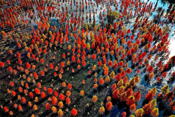 清澈的水面上倒映著一排排整齊的水杉樹,映襯著冬日溫暖的陽(yáng)光,似莫奈筆下一幅色彩斑斕、濃墨重彩的油畫。不時(shí)有幾只白鷺飛過(guò),或在水面捕食,或在林間嬉戲……這是一個(gè)能讓你靜下來(lái),慢下來(lái),悠閑自在,享受生活的自然之地。