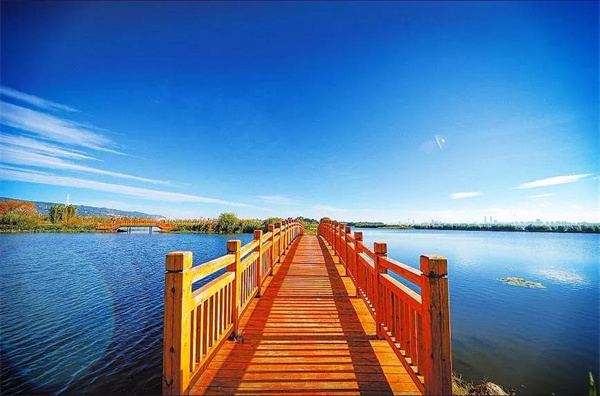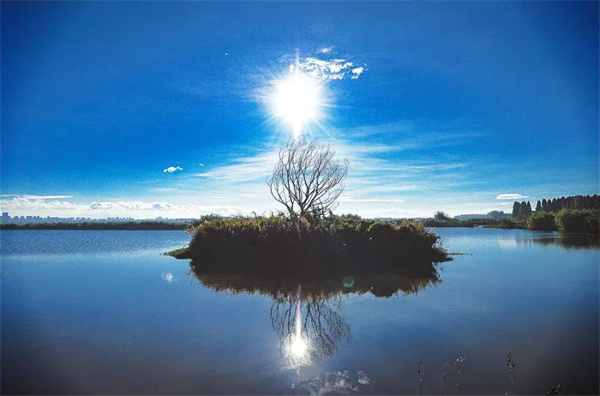 冬季的濕地有著自己的色彩,云影天光倒影在水面上,寂靜、空靈,別有一番韻味,微風(fēng)中徐徐搖曳的蘆葦,還有草叢中盛開的野花,交叉棧道蜿蜒在一片波光粼粼中,無(wú)不訴說(shuō)著王家堆濕地冬季的故事。