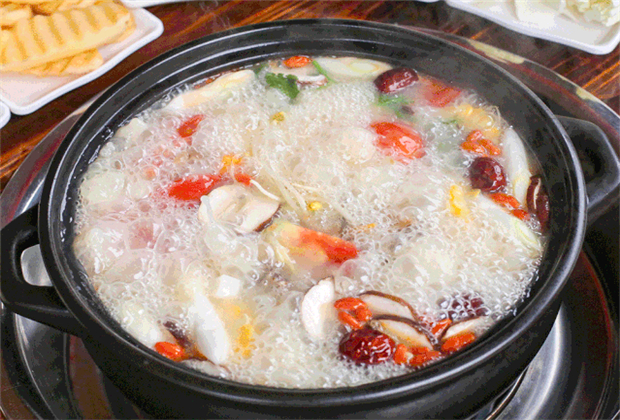 昭通天麻火腿雞火鍋,聽起來就是滿滿養(yǎng)生的感覺——昭通小草壩天麻、宣威火腿、文山三七、土雞,再配以西洋參、大棗、枸杞等多種尊貴藥材,營養(yǎng)價值爆表有木有!