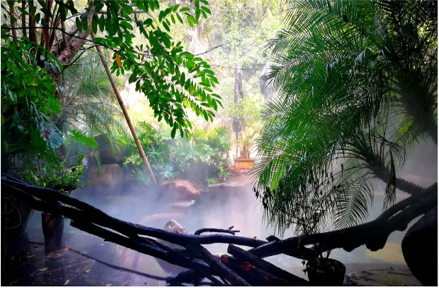 云南華僑城溫泉水公園擁有2萬平方米的歐式水療館、65個特色泡池的室外坡地園林景觀泡池區,在泡溫泉的同時,可以享受無邊界泳池,在星座沐浴區感受無限空間的遐想,體驗“漂流”樂趣。