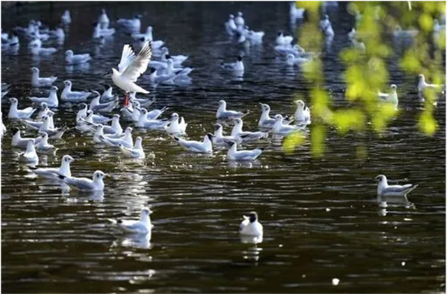 隨著公園西區長聯文化大道上銀杏漸黃,臨水區域就會飛來了首批安家的紅嘴鷗。