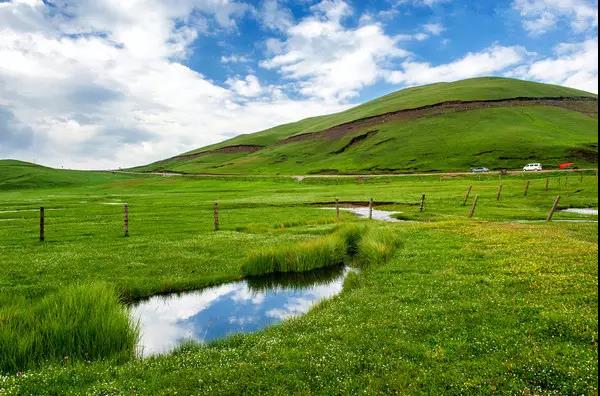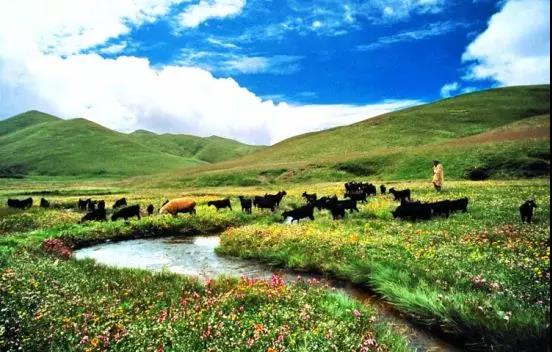 藍(lán)天白云一望無際的草甸,風(fēng)吹草地現(xiàn)牛羊。