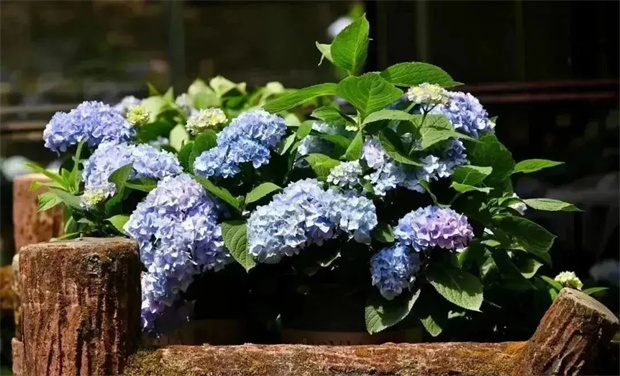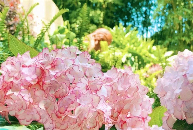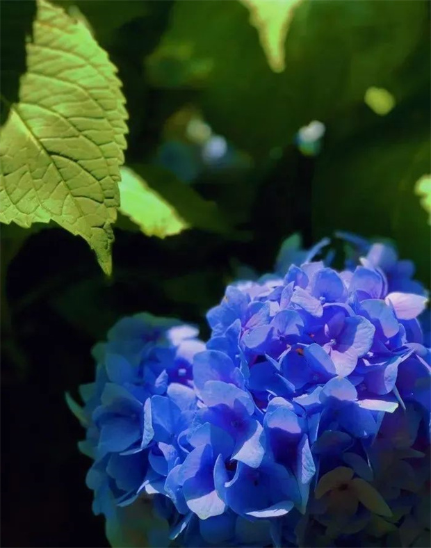 陽光斜照在樹葉上,投下的影子為繡球花打了一把傘。層層疊疊的繡球花開在曲徑通幽的小路旁,引著人進入一個又一個多彩夢境。