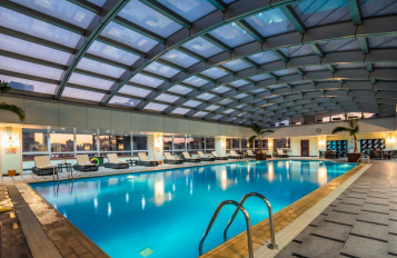 酒店8層打造了一個全玻璃頂的天幕恒溫游泳池,游泳池為 18*8(m)大空間,深水處為 1.6m,淺水處為 1.2m,水溫控制在 24-28 度。您可以在恒溫泳池中舒適暢游。