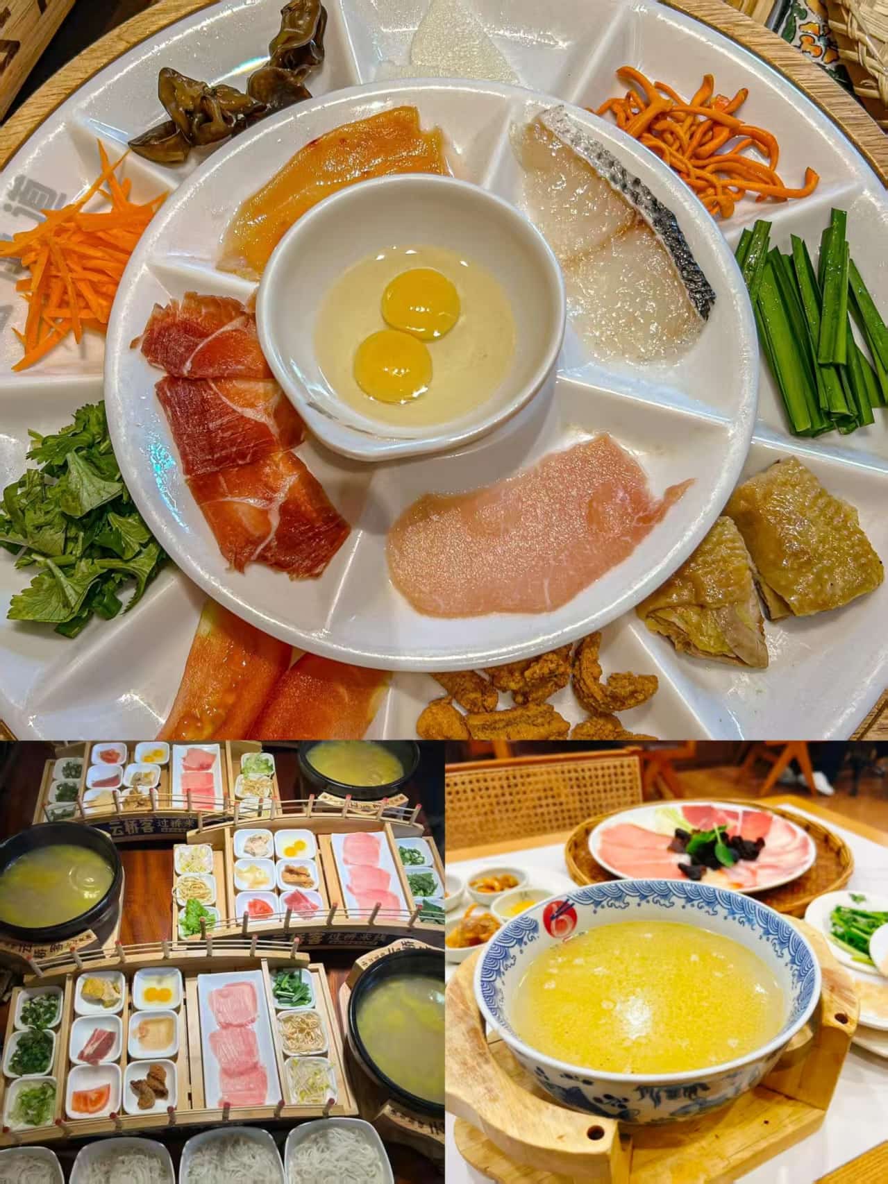 點(diǎn)一份經(jīng)典套餐,服務(wù)員會(huì)端上十余個(gè)小碟:鵪鶉蛋、肉片、火腿、菊花瓣、豆芽……依次將食材投入湯中,米線吸飽了高湯的醇厚,菊花的清香與肉片的鮮嫩在口中交織。若想更地道,可加一份現(xiàn)烤的玫瑰鮮花餅,酥脆的外皮裹著玫瑰醬,花香與甜味在舌尖綻放。