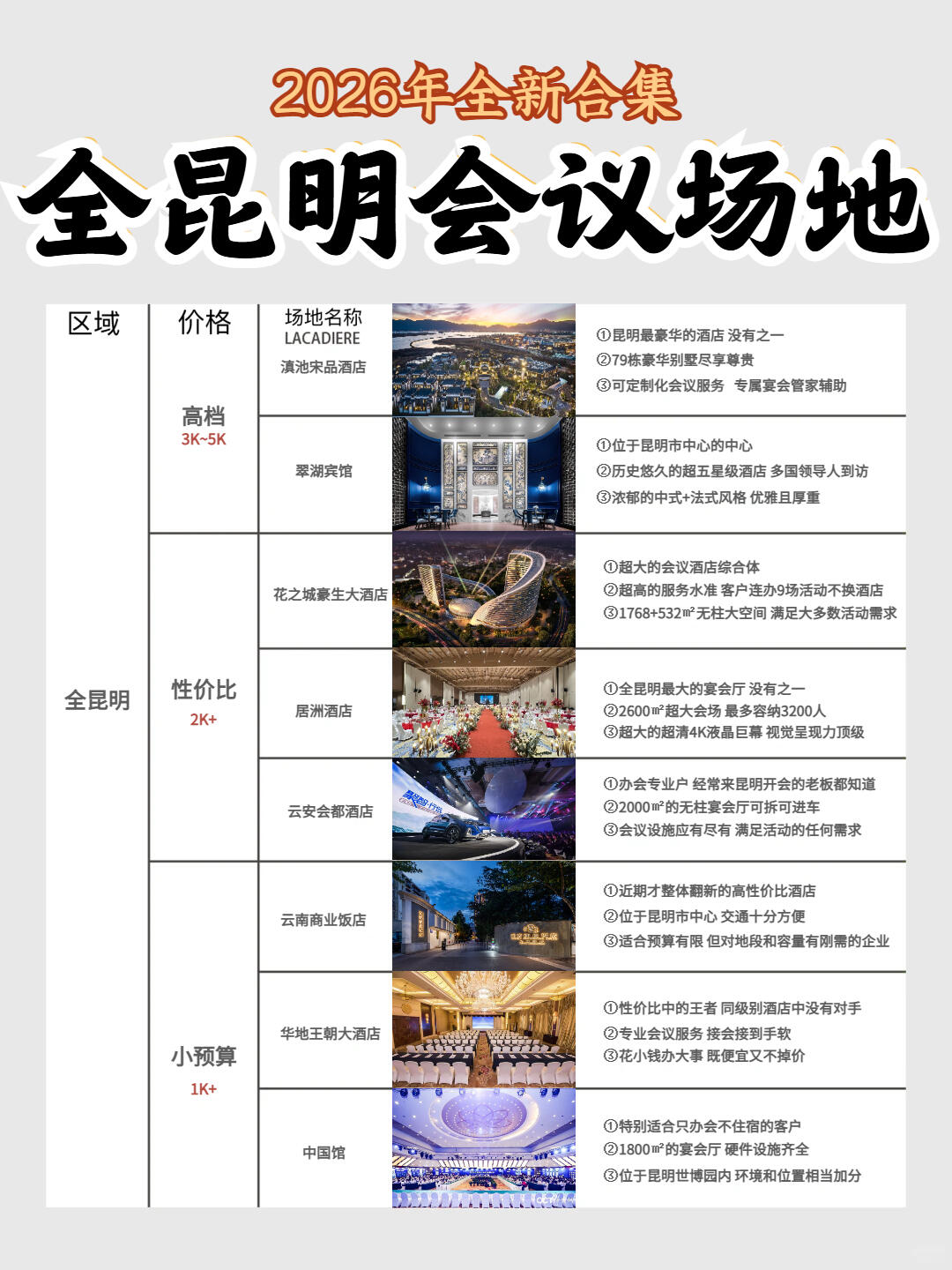 昆明全區(qū)域會(huì)議場(chǎng)地合集含餐標(biāo)+人數(shù)