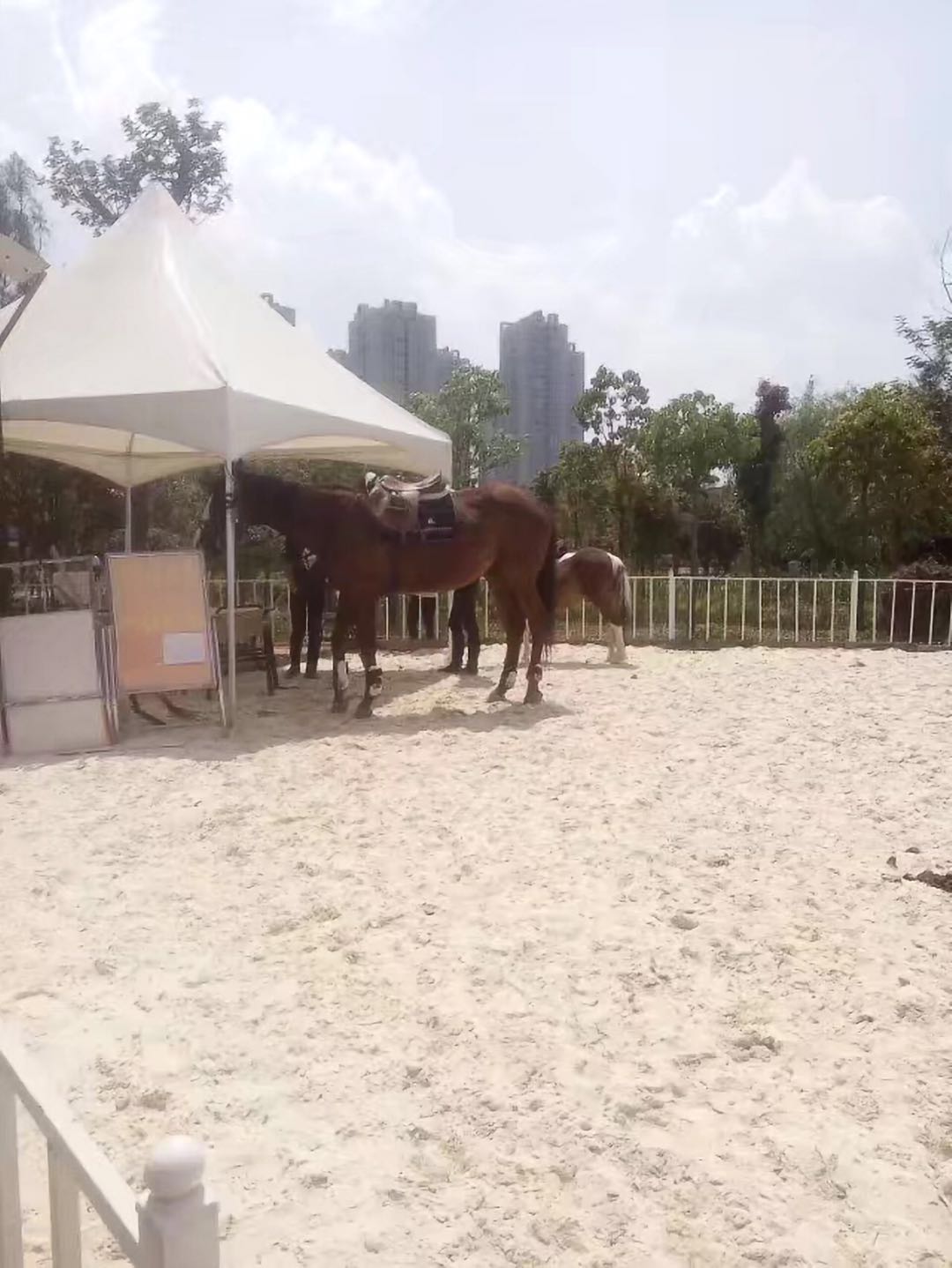在公園內(nèi),有一塊場地供游人騎馬,是公園的一大亮點。