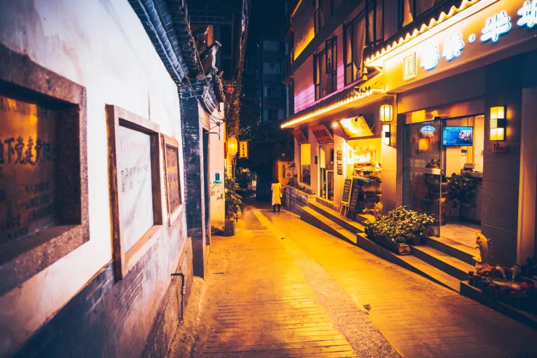 景星街游客眾多,如果要打卡拍照,建議夜間探訪,適合穿著漢服,畫一個古色古香的妝容,在古樸的建筑前,留下古韻瞬間。