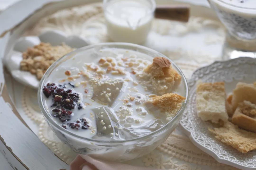 大塊的木瓜粉晶瑩透亮,觸感像果凍般Q彈,舀一勺放在碗里用勺子把木瓜粉打碎,加上一勺紅糖水、一點(diǎn)玫瑰糖、一把冰碎,最后撒上一小撮熟芝麻粒,一碗香甜沁脾的木瓜水就做好了。