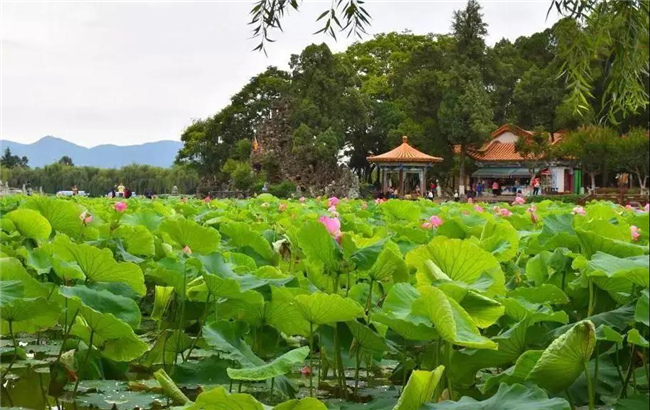 翠湖約有40畝荷塘,分布于園內(nèi)東、南、觀魚樓等各處,田田荷葉間,粉、紅、白的荷花若隱若現(xiàn),清麗脫俗、韻致極佳,在翠湖賞荷,可謂無處不風(fēng)景。