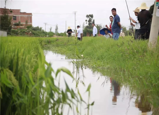 在縱橫交錯的田埂小道上,三五成群的垂釣者正在享受著難得的靜謐時光,四周青翠欲滴的碧草和富有愛國情趣的彩稻,完全隔絕了城市的喧囂和浮躁,留下的只是忙里偷閑的寧靜和微風拂面的愜意。隨著矗立水面的浮標急速下沉,釣者提竿收線,一條條活蹦亂跳的鮮魚被拉出水面,一次垂釣在持竿者一氣呵成的動作下圓滿收官,這是記者在沙堤村網紅稻田看到的景象,一幅令人羨慕的午后風俗畫。