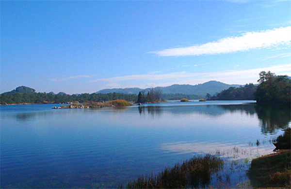 長湖風景區距昆明市區約120公里,出發僅需2小時便能到達。同時,由于湖體位置較為隱蔽,它又被稱作“藏湖”,所以相比起游人如織的石林主景區,這里可謂一處清幽靜謐的所在。
