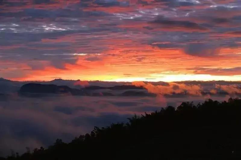 置身大蘆山的茫茫云海,如漫步云端,晨觀朝陽初升,暮賞落日紅霞,似有一只巧手執彩筆為遠處山嵐勾勒出一幅絕美圖景。云海漫涌,群山萬壑隱于云層之下,只有遠處的山巔隱約可見,如同天際的孤島,在白浪里沉浮翻騰。