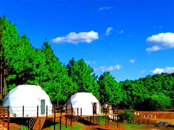 走入祿豐市一平浪鎮(zhèn)橫溝村委會(huì)新街子天然大氧吧,映入眼簾的是,清風(fēng)明月彈清曲、綠海松濤翩起舞的一派旖旎風(fēng)光,六間造型新穎的帳篷酒店赫然出現(xiàn)在眼前。