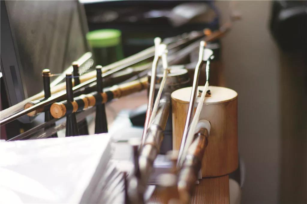 戚異峰,云南省花燈劇院民族樂團團長,國家一級演奏員,他介紹:樂隊所用的樂器,通常包括四個部分:弦樂、彈撥樂、管樂和打擊樂。弦樂,包括二胡、中胡、大提琴、貝斯等;彈撥樂,通常包括揚琴、琵琶、中阮、大阮;管樂,指的是竹笛、嗩吶、笙等;打擊樂,板鼓、小堂鼓、大鼓、鑼缽镲等是常規樂器,俗話說“半場鑼鼓半場戲”,沒有打擊樂,就不稱之為“戲”,足可見其重要性。