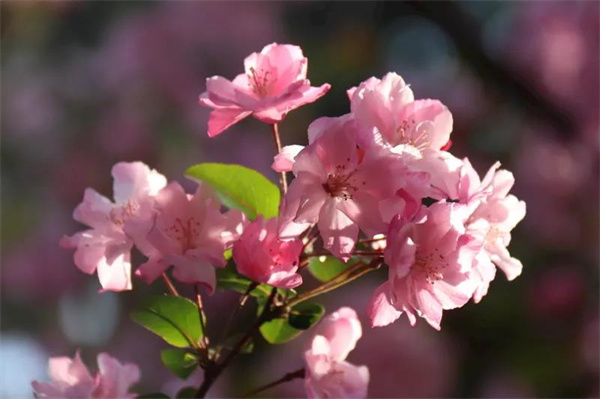 海棠花也如約綻放,與盛開的櫻花交相輝映。