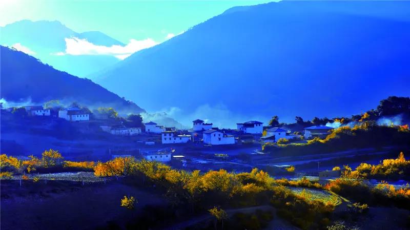 牦牛走過香巴拉的山崗望向不遠處的家: