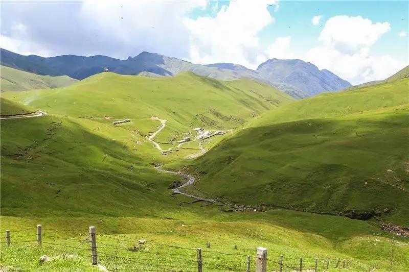 白云鋪在山頂,陽光灑在起起伏伏的草毯,牛羊走在山坡。