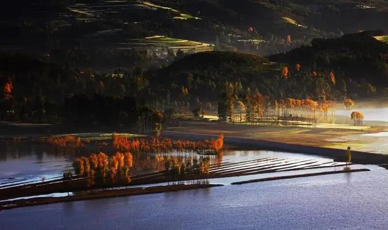 在每個清晨和黃昏,光線穿過云層投射到山峰或田園村落,美到任何一景都可以入畫。