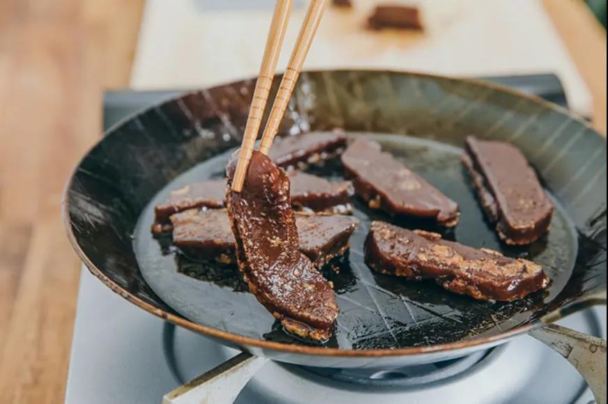 玫瑰年糕顏色棕紅油潤(rùn),可保存時(shí)間較長(zhǎng),切片后油煎、烘烤、蒸食都可以,味甜香糯,柔韌適口,非常美味。