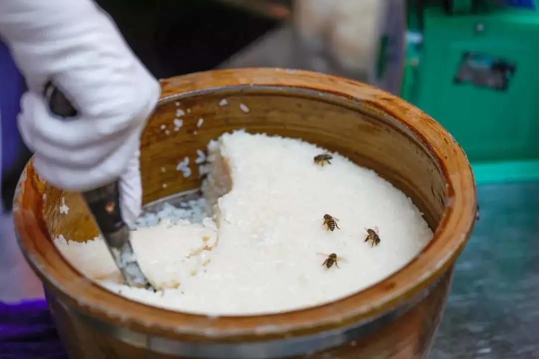 云南的甜白酒裝在大缸里出售,潔白敦實(shí),和外地質(zhì)地稀薄的醪糟不同,引來無數(shù)蜜蜂光臨是常有的事。