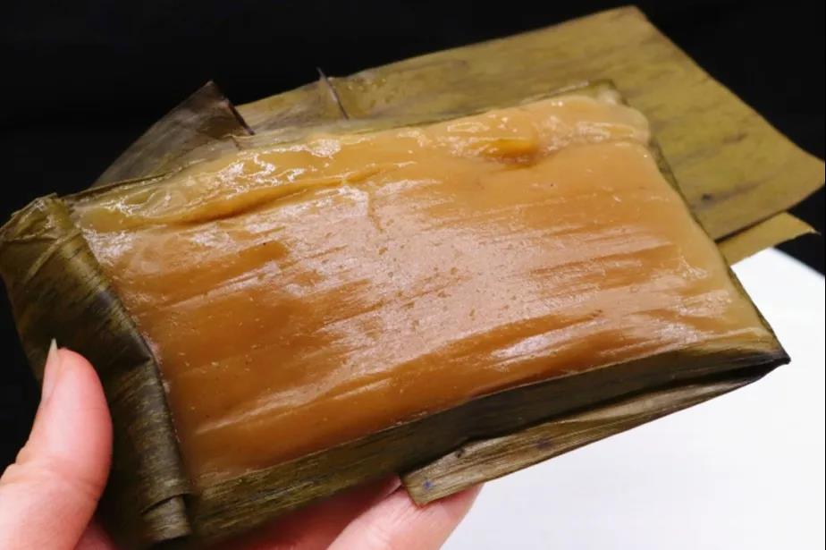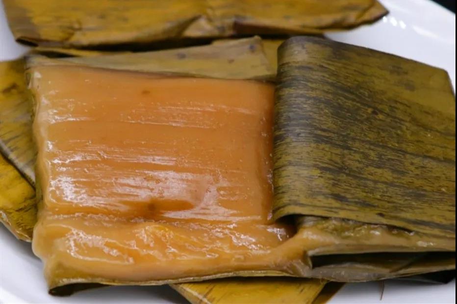 將上好的糯米磨成粉,加入紅糖揉成面團(tuán),然后用新鮮的芭蕉葉包裹,蓋上蒸籠蒸熟。潑水粑粑既有糯米的米香,又有芭蕉葉的清香,綿軟而富有彈性,好吃不膩!