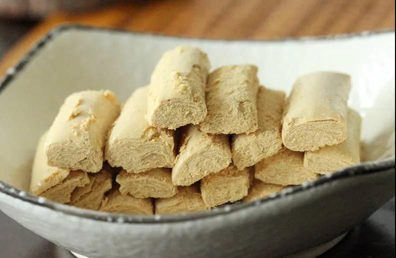 豆末糖是云南通海歷史悠久的傳統(tǒng)甜點(diǎn),以云南特有的大豆,經(jīng)過精心挑選、焙烤、粉碎,配以當(dāng)?shù)厣a(chǎn)的飴糖和其他物料,經(jīng)高溫熬制、糖膏與豆末多次折疊、精心制作而成。